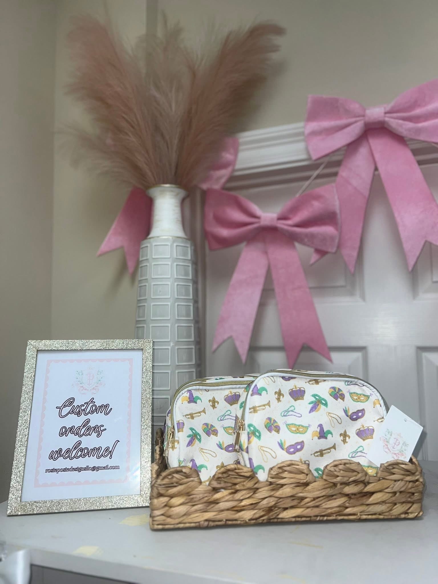 Personalized or custom items may not be returned or exchanged under any circumstances unless a manufacturer defect is present. Any issues or defects must be reported to Rosie Posie customer service within 3 business days of confirmed delivery. Please email us at rosieposiedesignsllc@gmail.com with any questions or concerns.